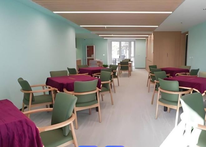 荣华齐山康乐家园总占地面积35万余平方米,建筑面积近38万平方米,绿化率超70%,拥有超过50种植被,形成天然氧吧。社区内设3万余平米自然生态慢谷公园,含粉红网球场、亲子帐篷营地、亲亲鹿苑;7000平米开心农场供长者种植有机蔬菜,体验田园乐趣。居住空间采用适老化设计:单人间面积25—40平方米,配备电动护理床、智能马桶及紧急呼叫系统;双人间面积35—45平方米,共享卫生间配备适老化家具;多人间面积40—50平方米,四至六人间布局经济实惠。公共区域部署毫米波雷达跌倒监测系统,走廊宽度达1.8米,房门尺寸适当放宽,确保长者行动安全。此外,社区还配备医疗康复中心、多功能活动厅、图书阅览室、棋牌娱乐室等设施,满足长者多样化需求。