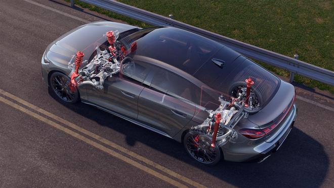 在电气架构上,基于PPC平台E³1.2电子架构打造,五大域控制器协同工作,使车辆的通信延迟更低、智能化程度更高、算力更强,为高阶辅助驾驶系统和数字生态系统提供了坚实的底层支撑,并且支持OTA迭代升级,让车辆能够与时俱进,不断优化功能。