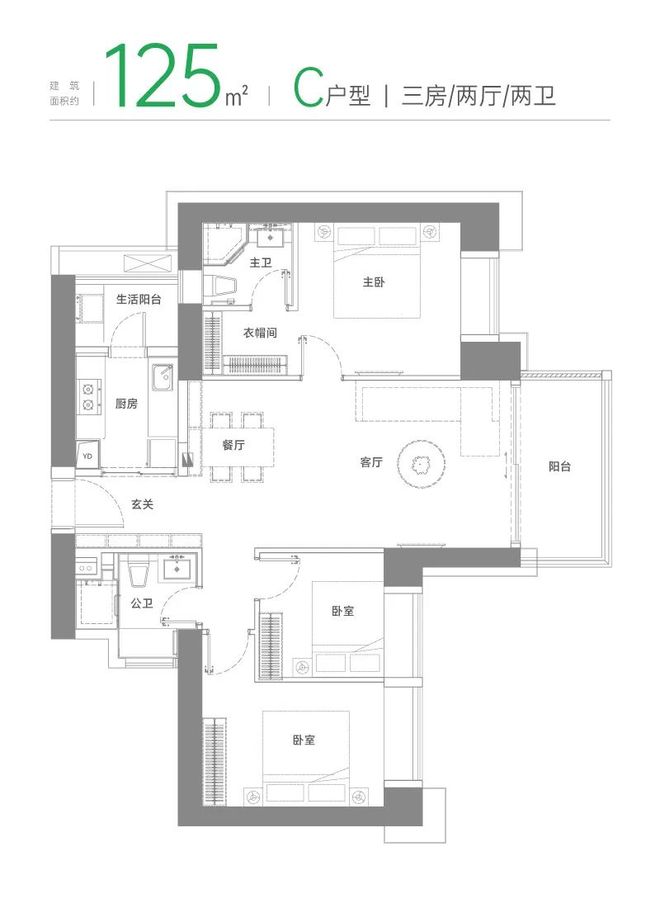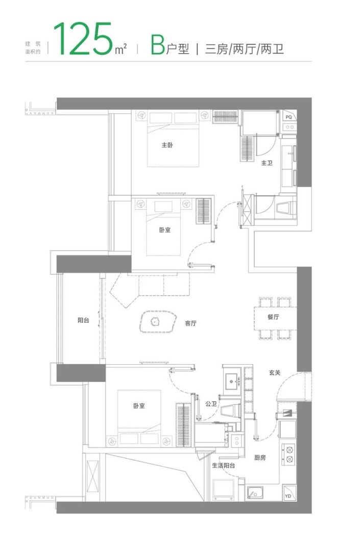 瞰景三房,飘窗、阳台拉开居住视野,主卧私享功能产备 LDK一体化设计,打造无边界、社交化的餐客厨系统I动静分区舒适化营造,休慎与家庭活动互不干扰双阳台设计,厨房连通生活阳台,延展更多空间,随心收纳